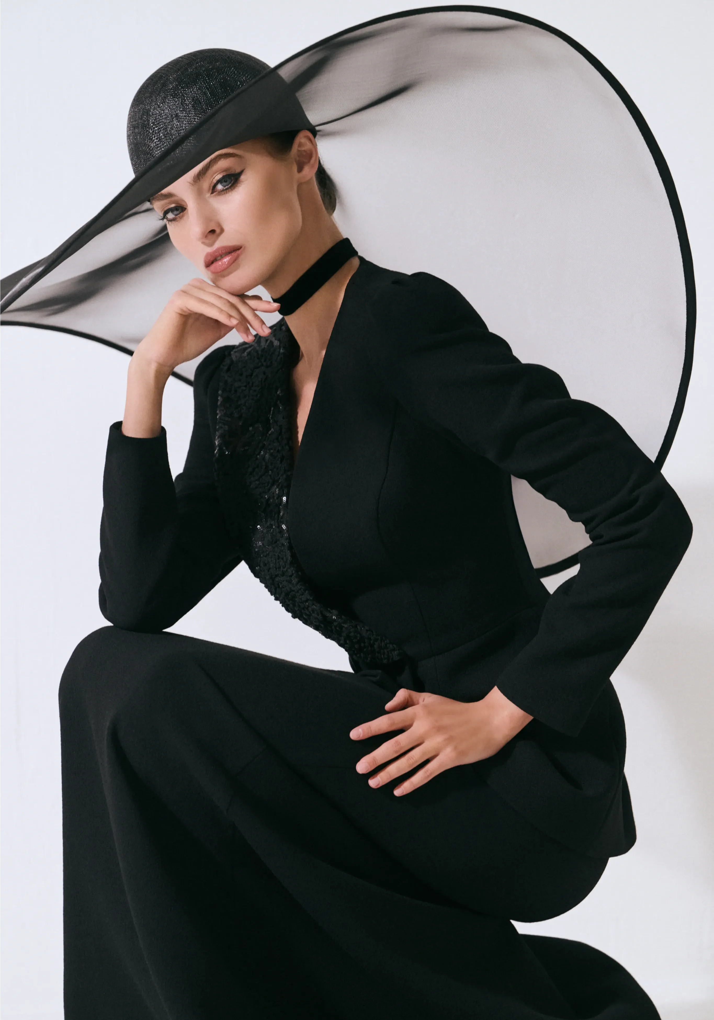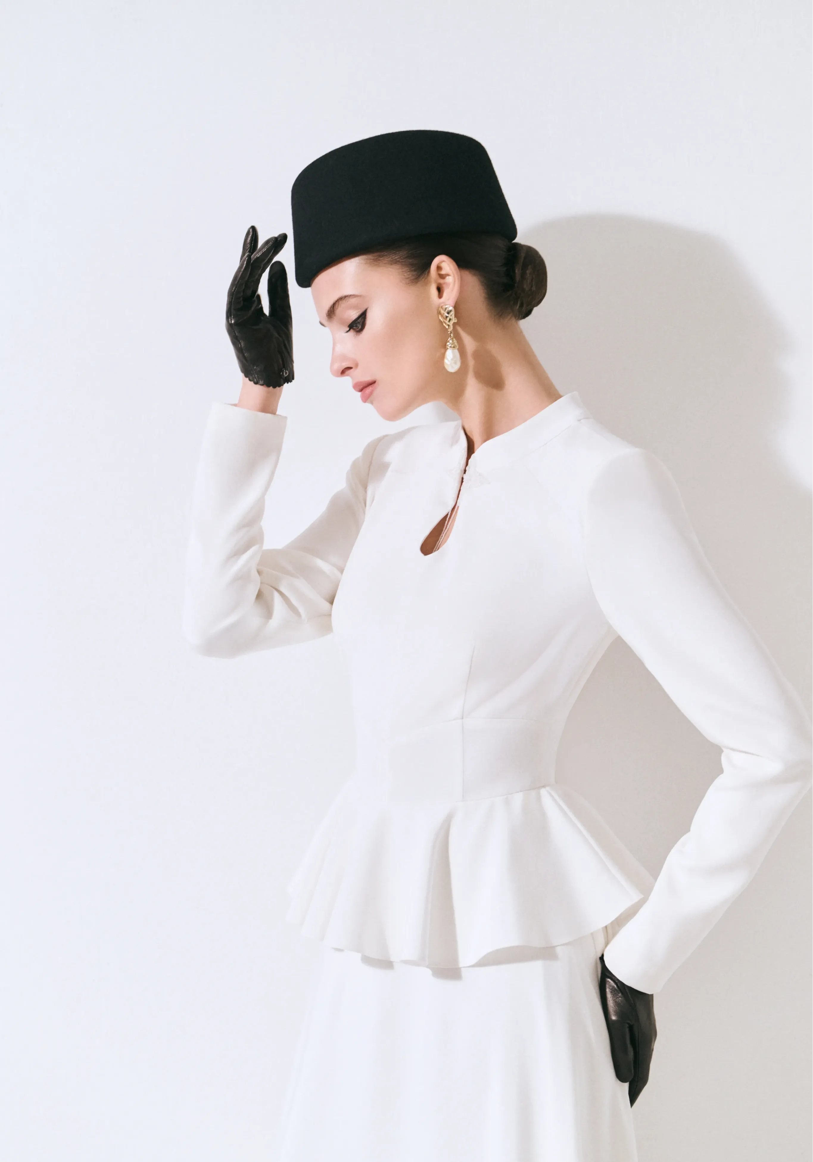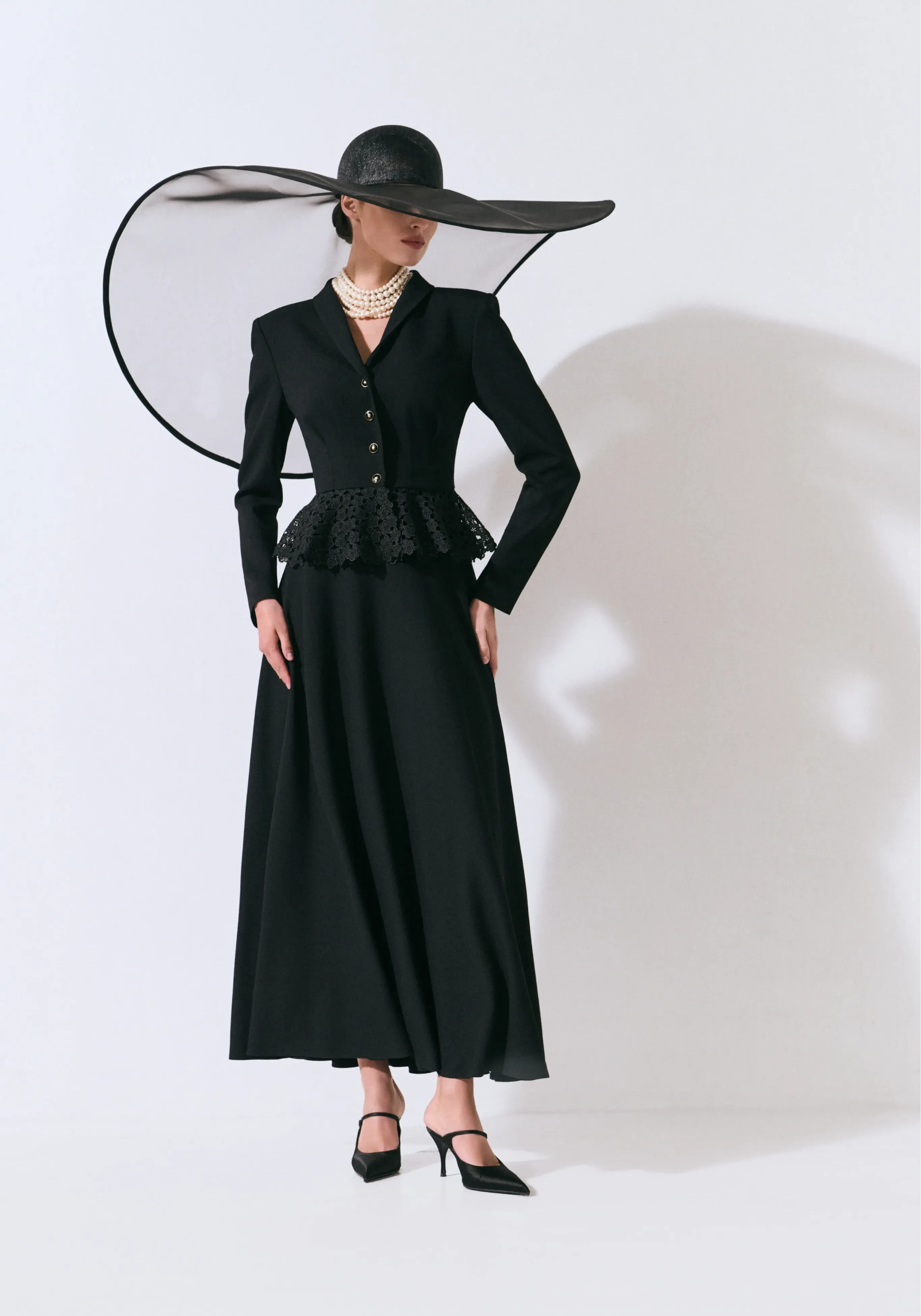 Платье из шелкового кади с баской и авторской вышивкой