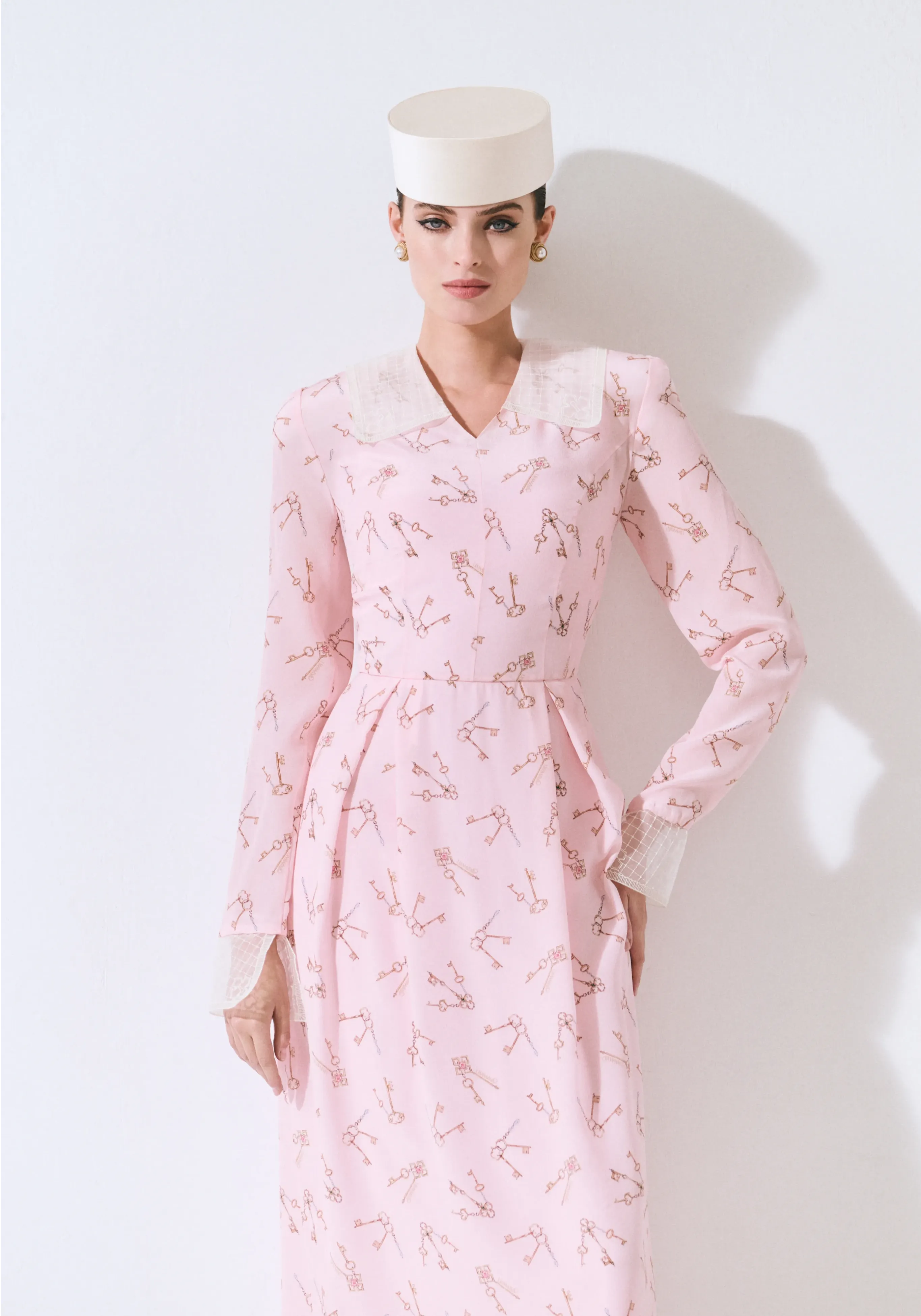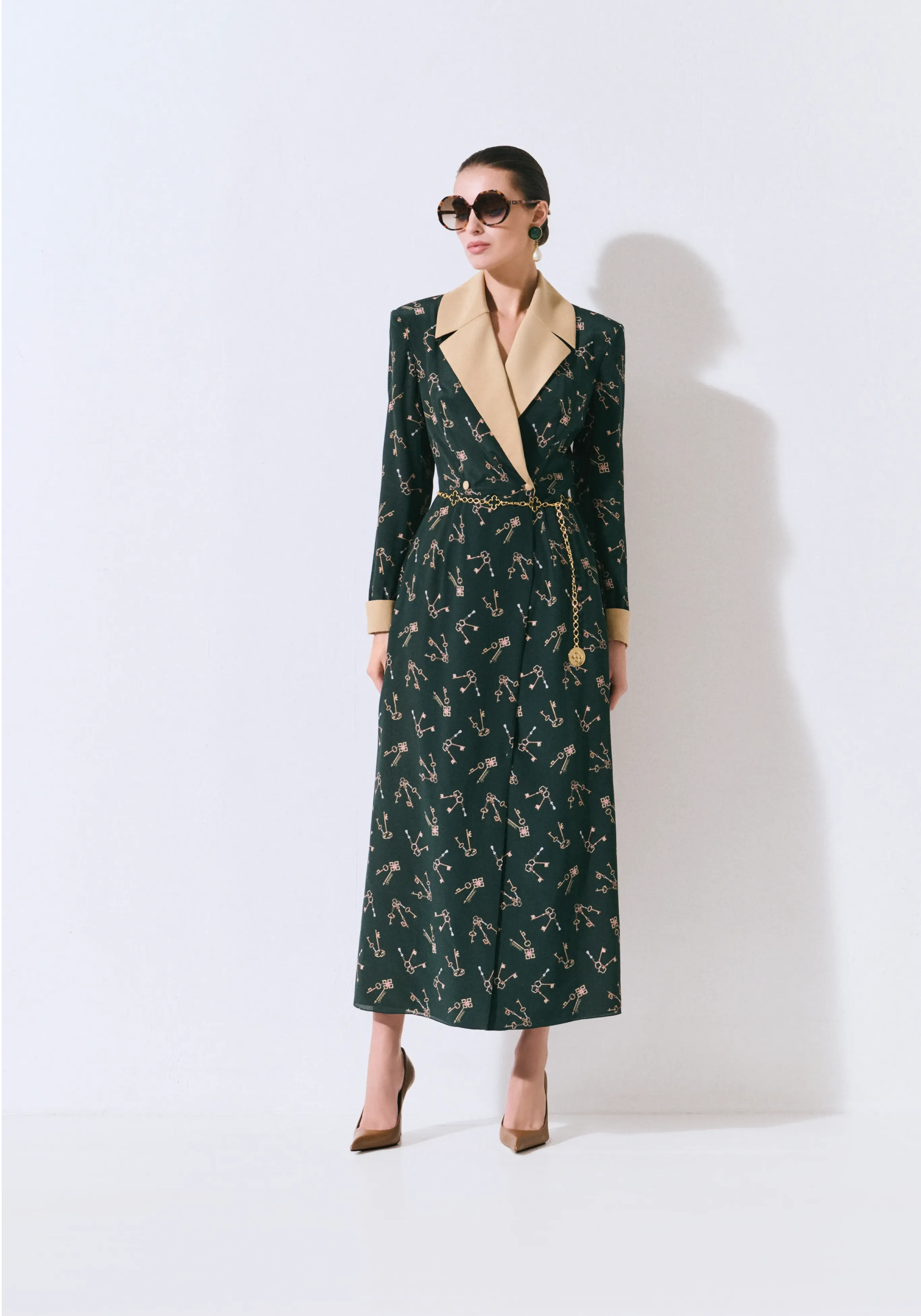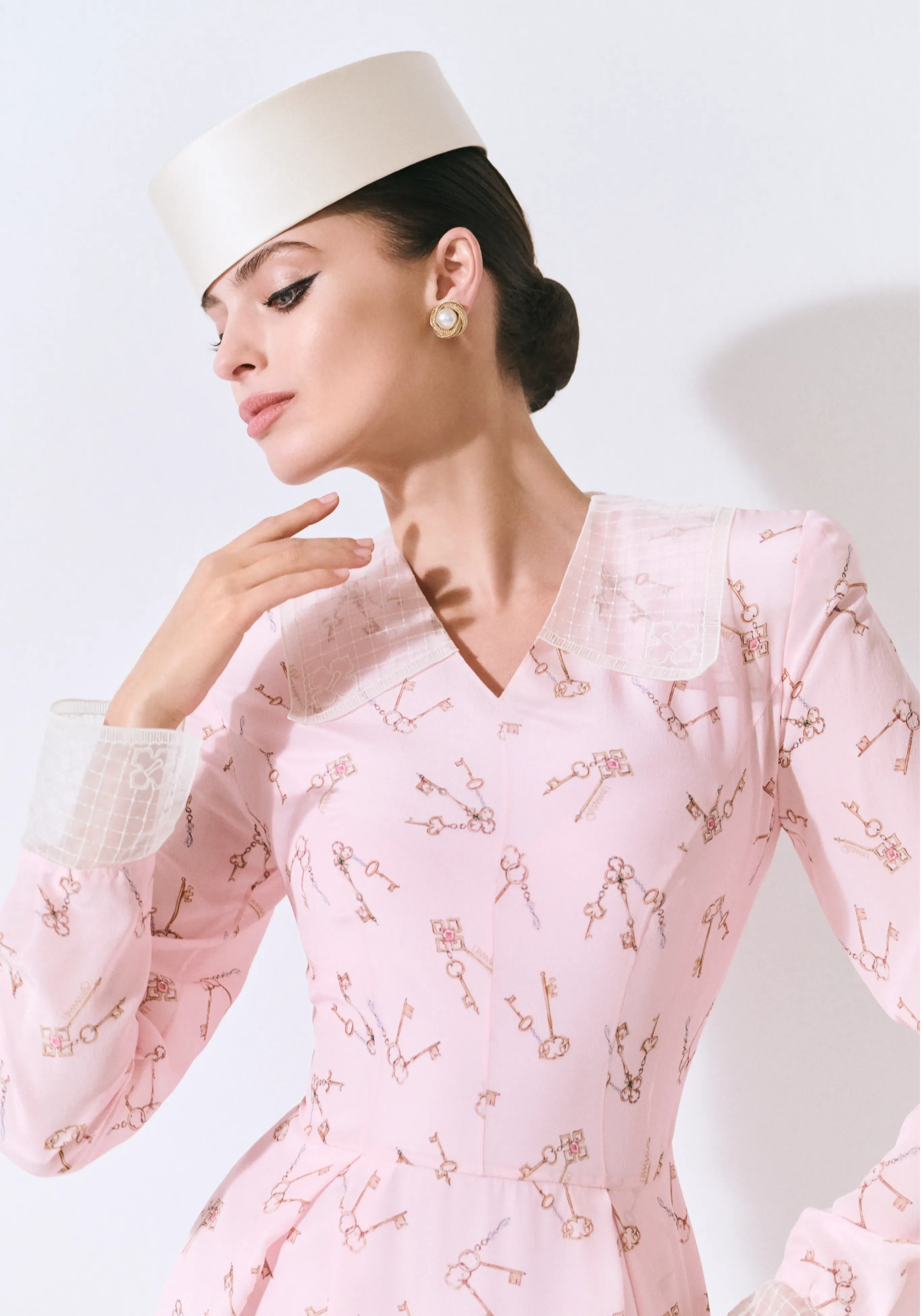 Платье из шелка с авторским принтом и отложным воротником