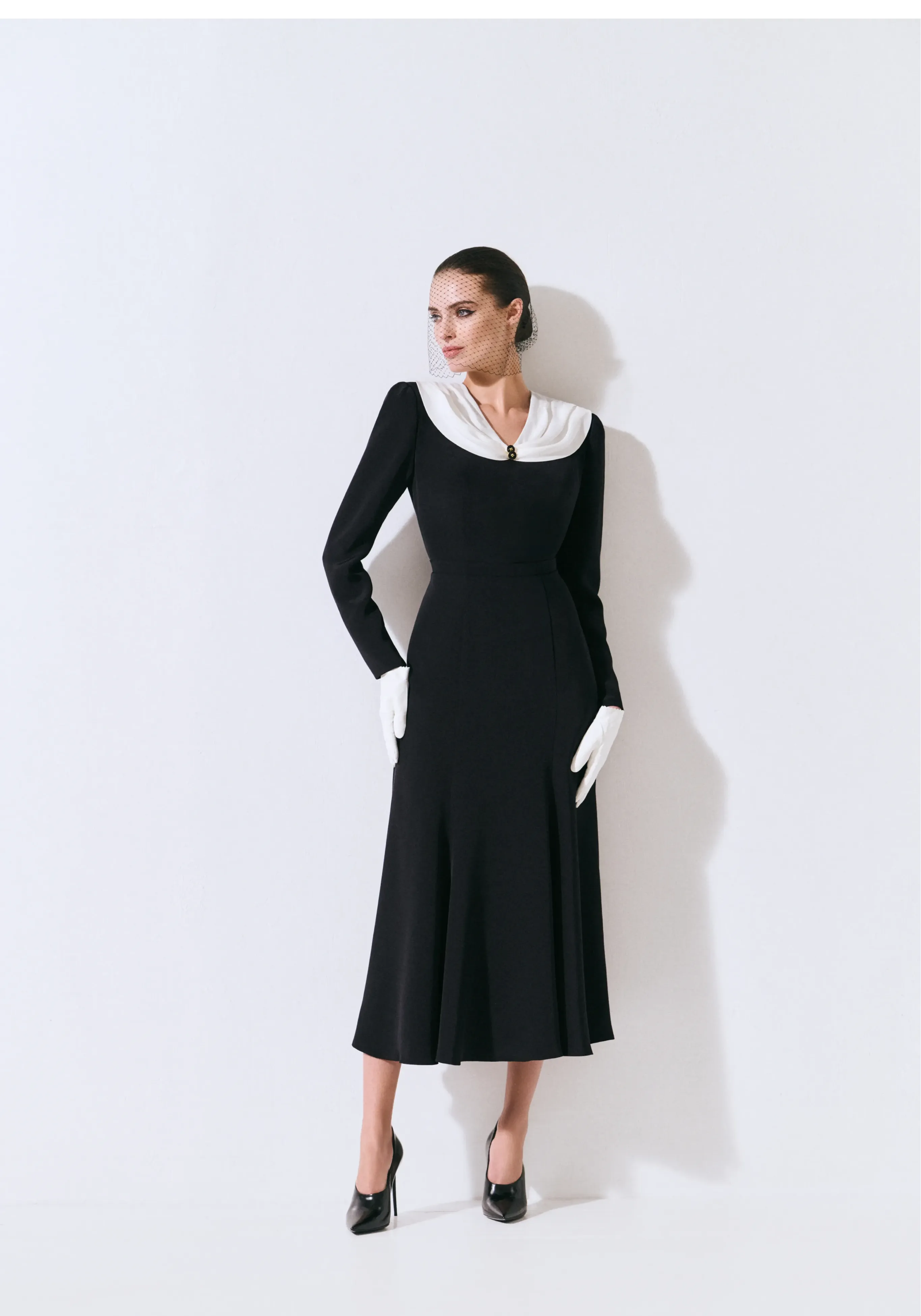 Платье из шелка с декоративным воротником