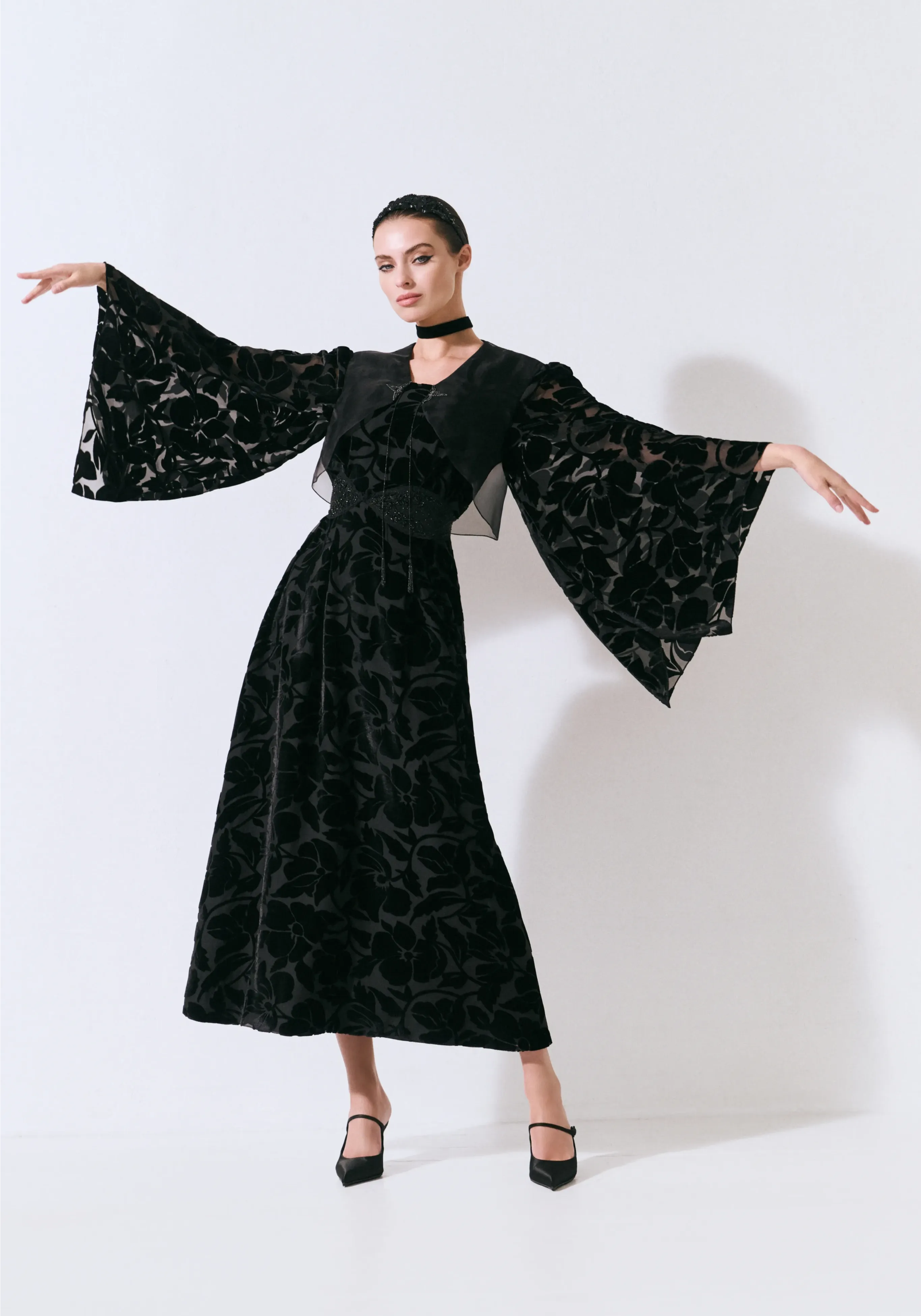 Платье из шелкового панбархата с авторской вышивкой
