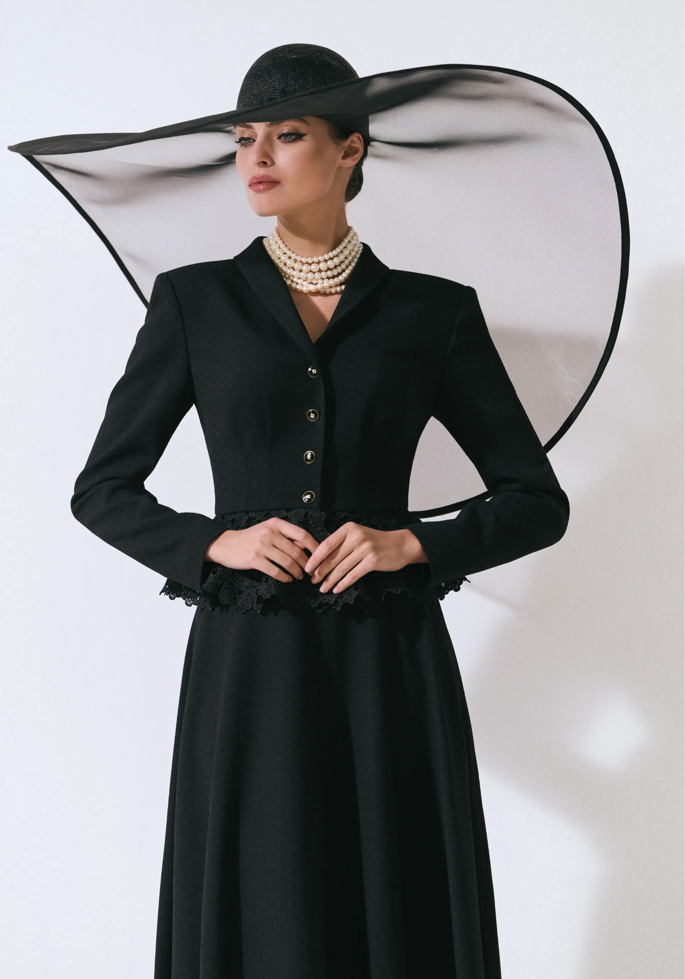 Жакет из жаккарда с кружевной баской