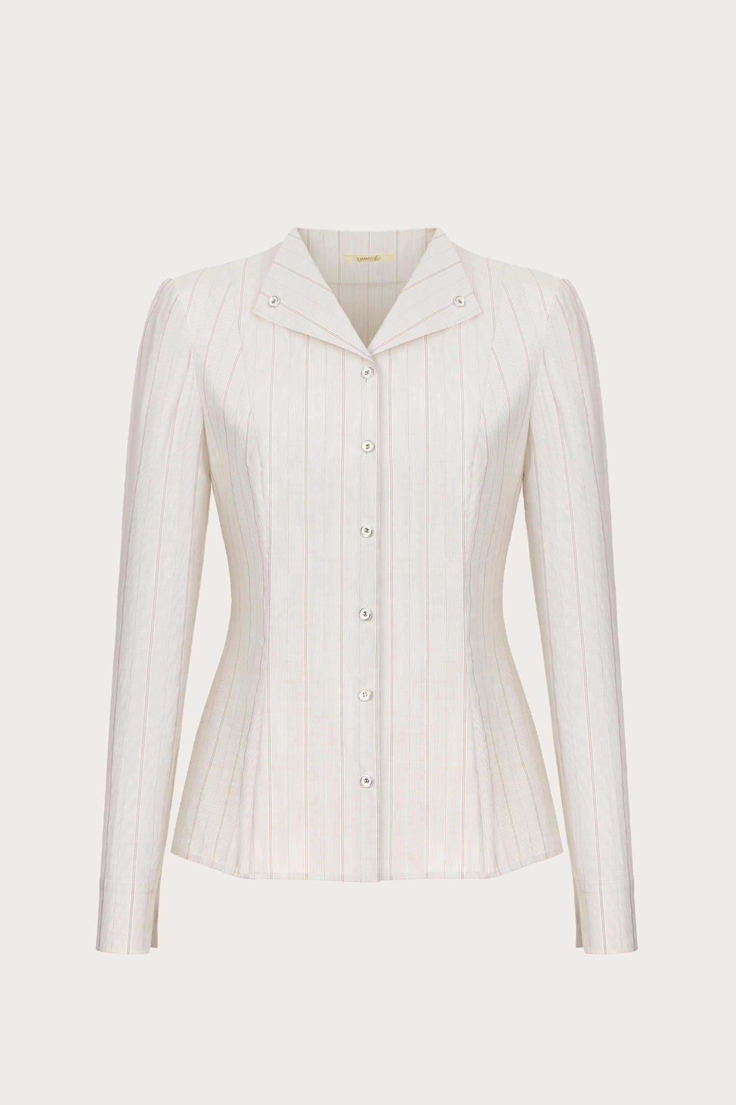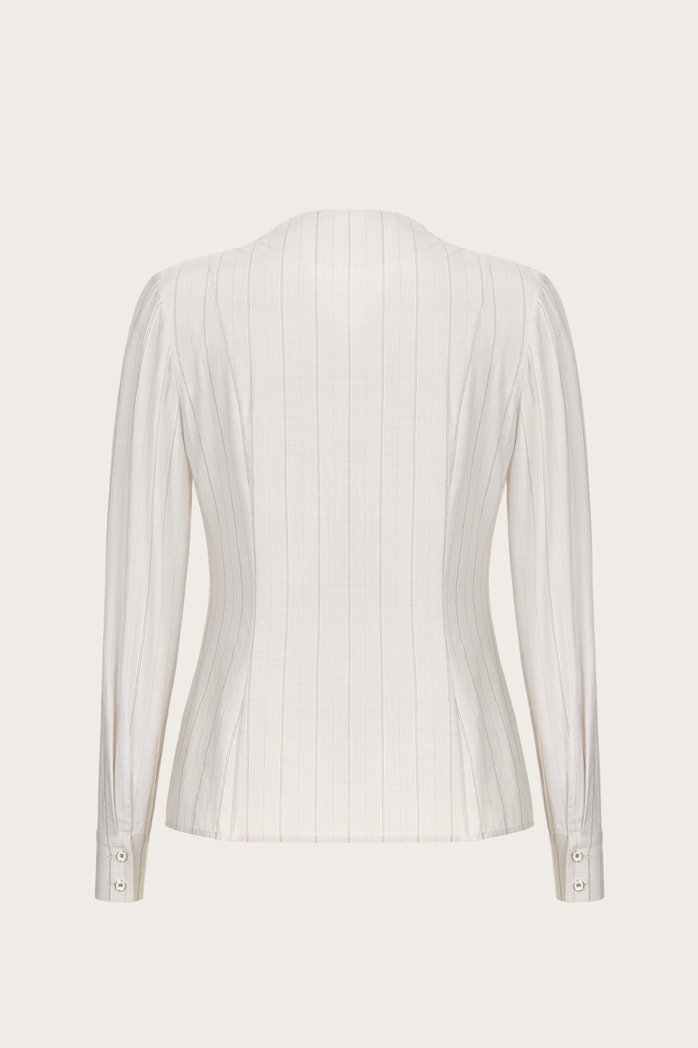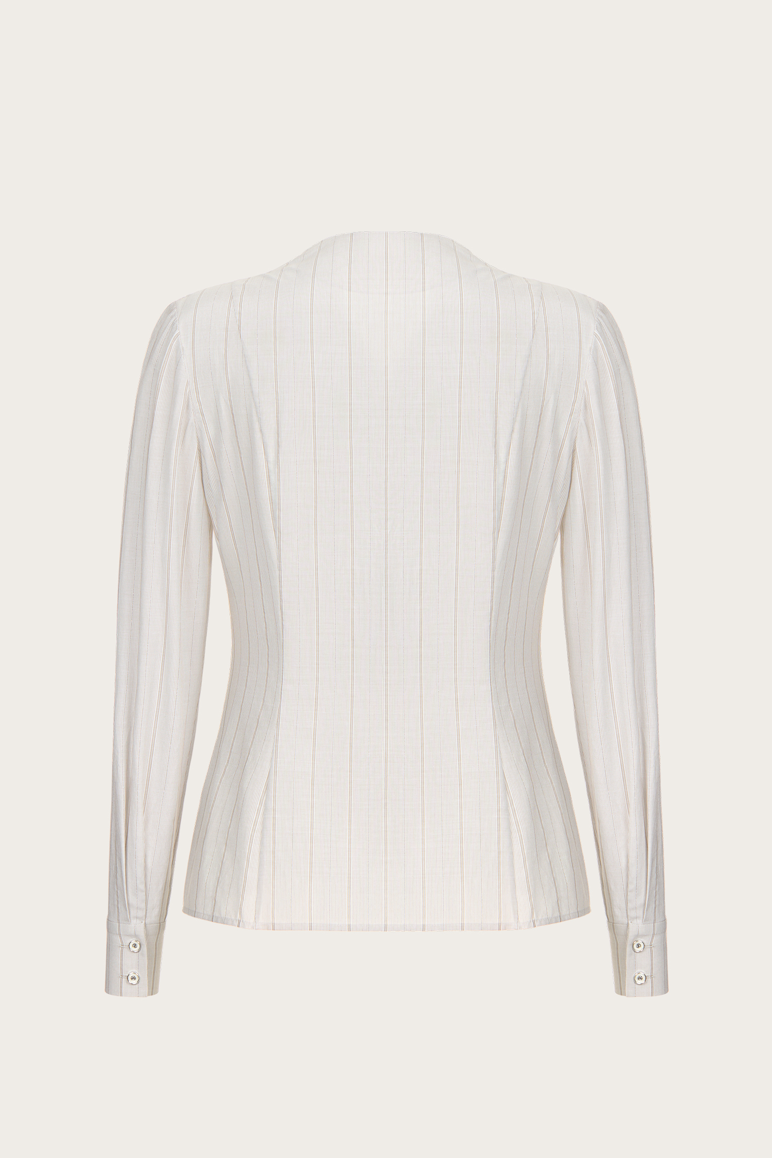 Блуза с длинными рукавами, выполненная из молочного хлопка в полоску. Застежка на пуговицы по переду. Прямой силуэт. Только сухая чистка. Сделано в России.