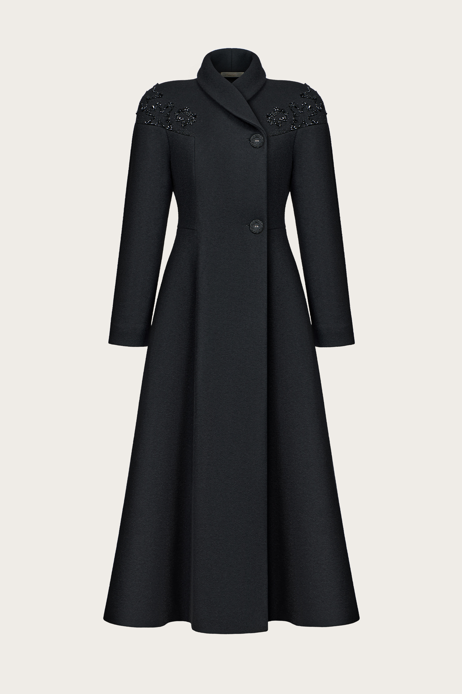 ПАЛЬТО ИЗ КАШЕМИРА С РУЧНОЙ ВЫШИВКОЙ НА ВОРОТНИКЕ