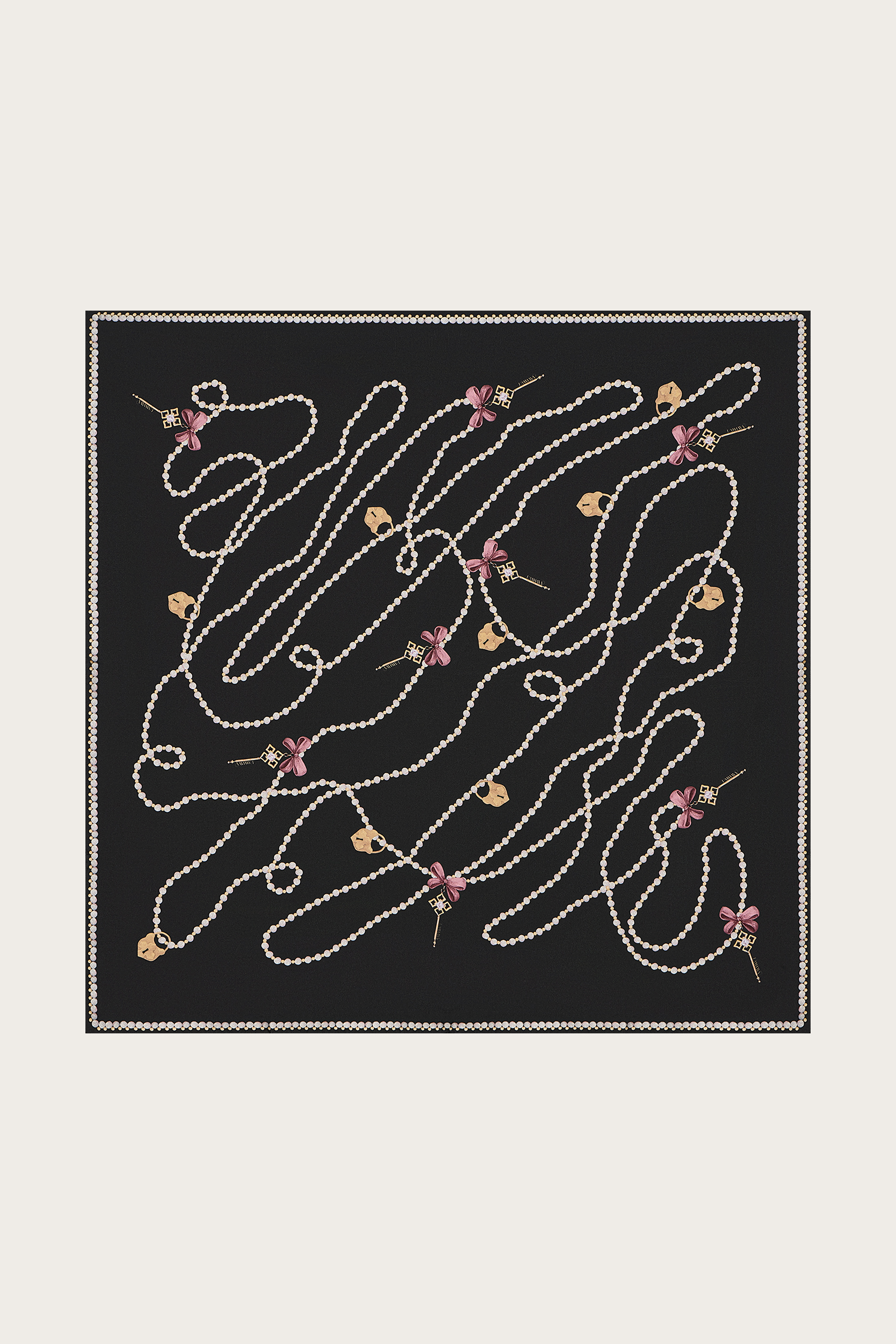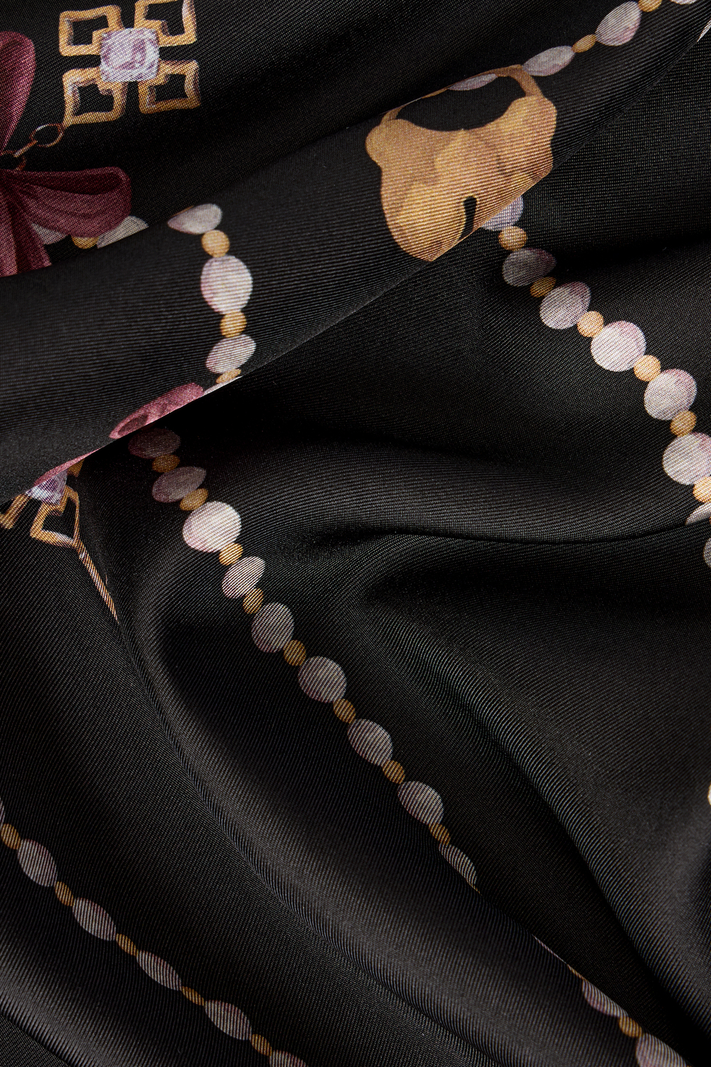 Платок из черного шелка с авторским принтом. Размер 90*90. Обработанные края. Только сухая чистка. Сделано в России.