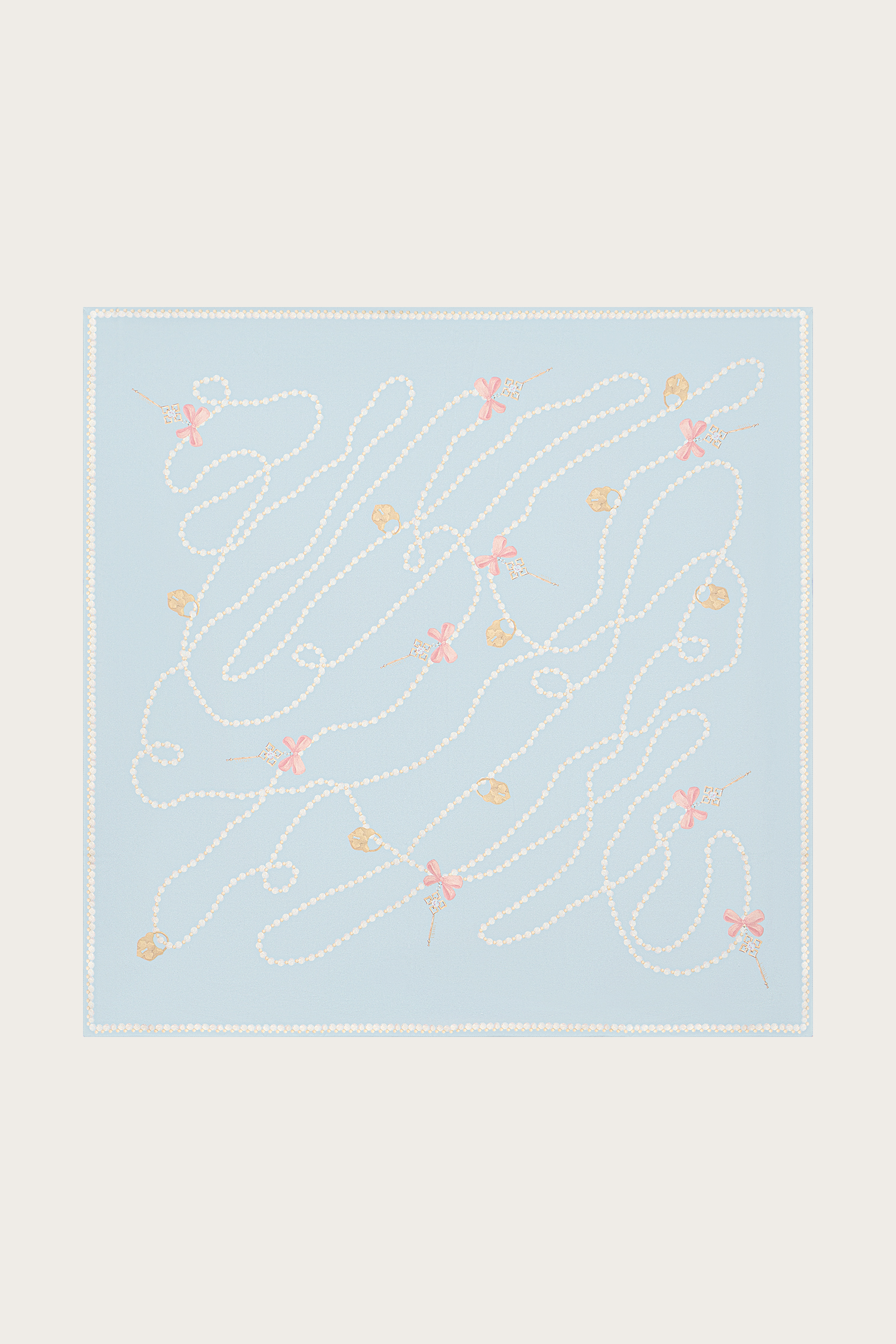 ПЛАТОК ИЗ ГОЛУБОГО ШЕЛКА С АВТОРСКИМ ПРИНТОМ 90*90
