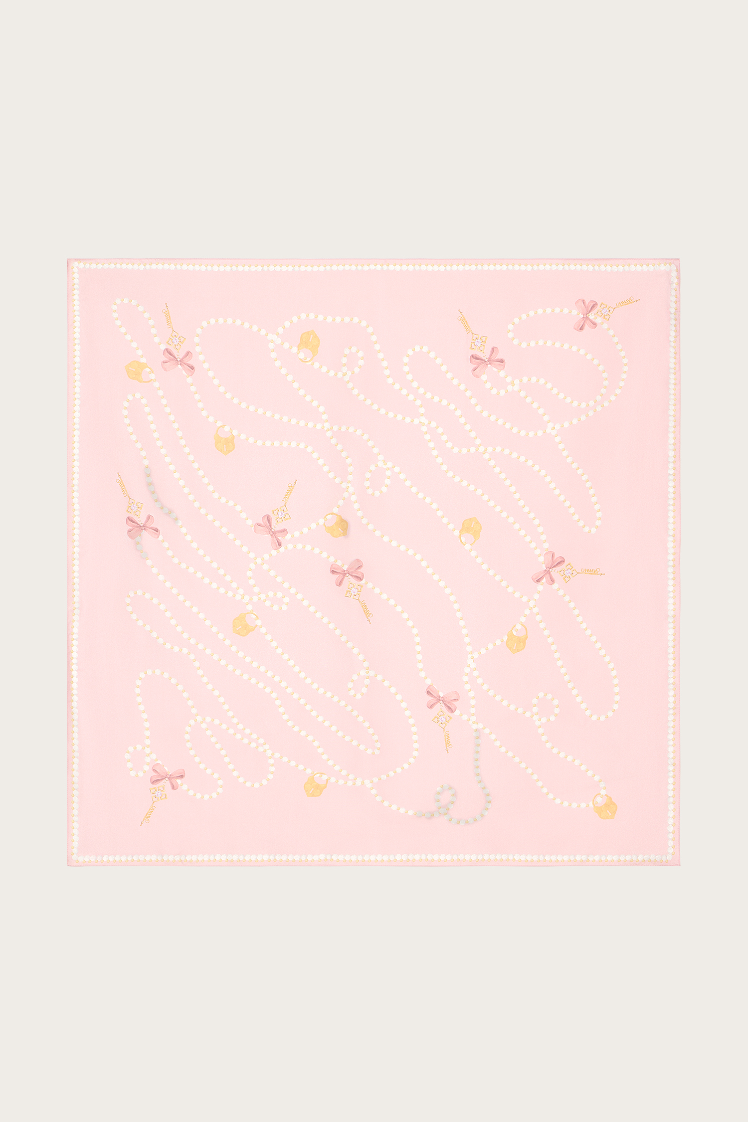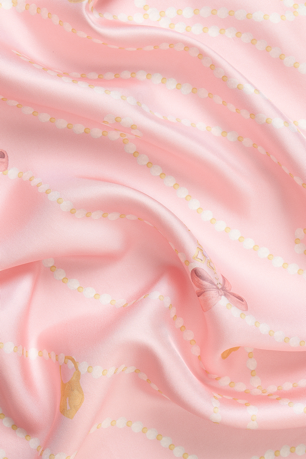 ПЛАТОК ИЗ РОЗОВОГО ШЕЛКА С АВТОРСКИМ ПРИНТОМ 90*90