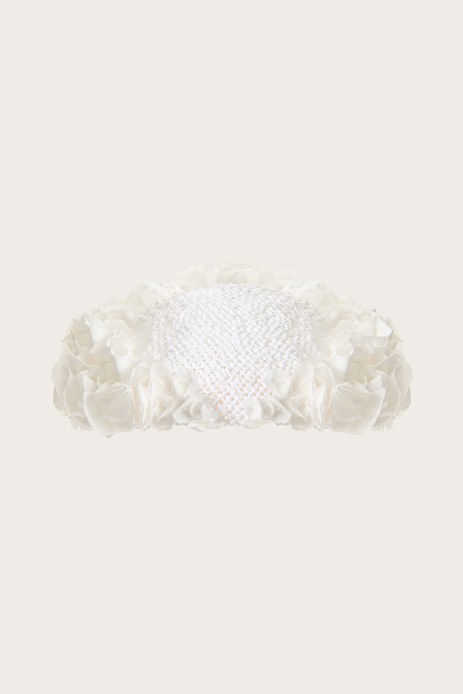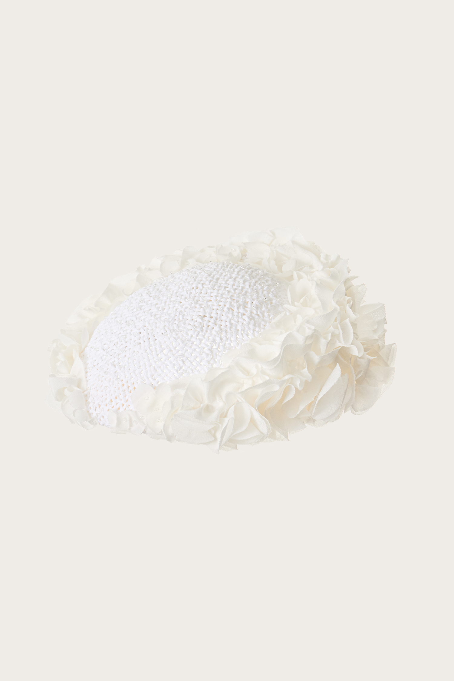 Плетеная шляпка белого цвета, расшитая вручную шелковыми лепестками. Сделано в России.