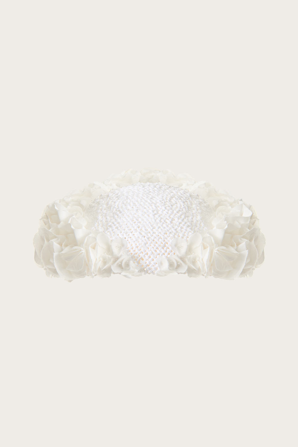 Плетеная шляпка, расшитая вручную шелковыми лепестками