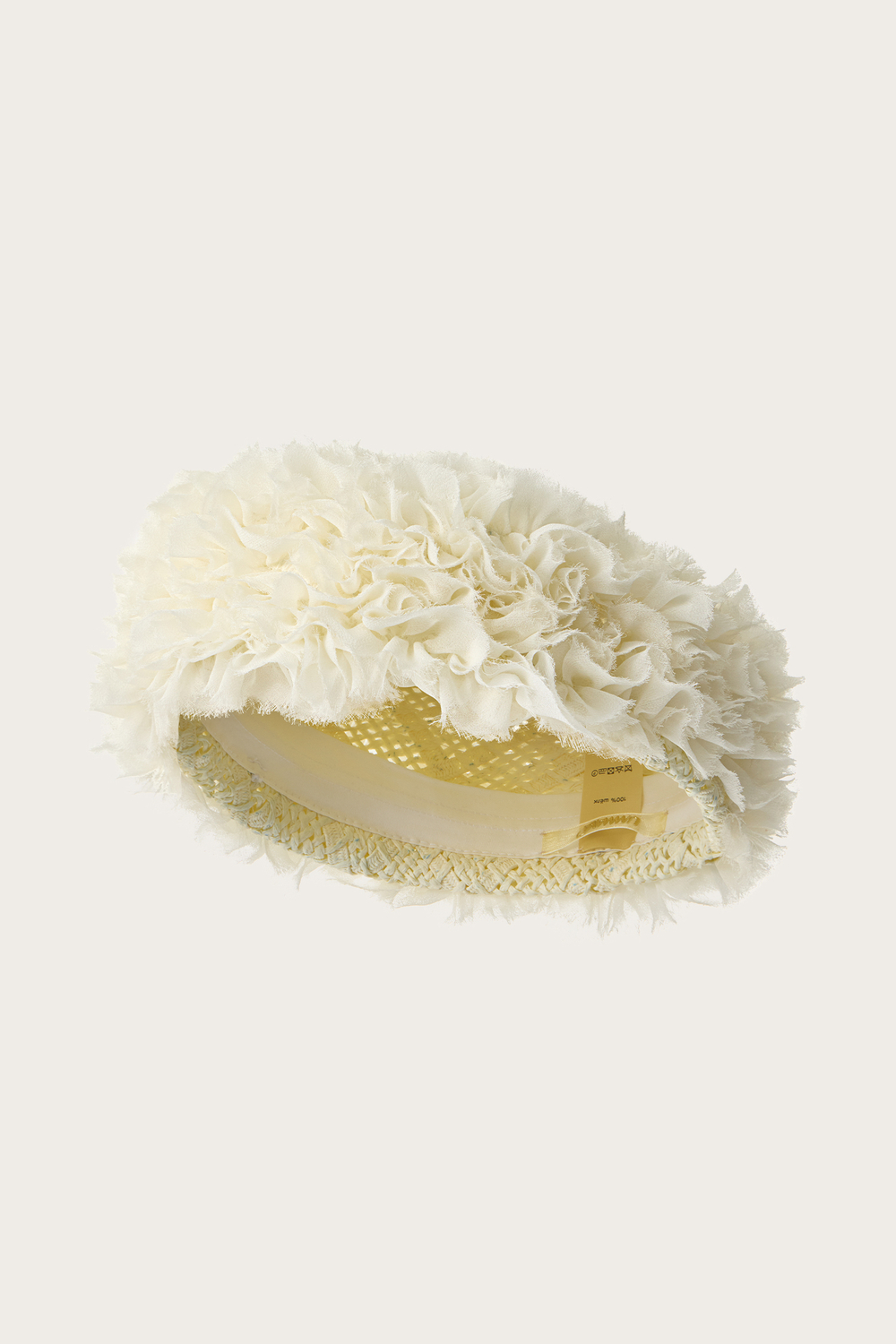 Шляпа молочного цвета, вручную расшитая лепестками. Плотный каркас. Сделано в России.