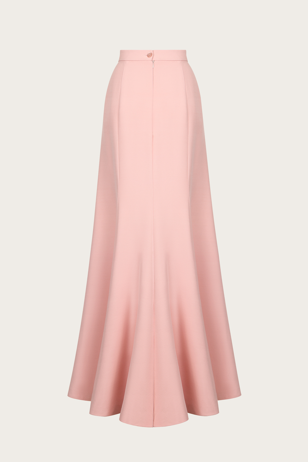 Юбка макси из розового шерстяного крепа. Расклешенный книзу силуэт. Застежка на молнию и крючок по спинке. Только сухая чистка. Сделано в России.