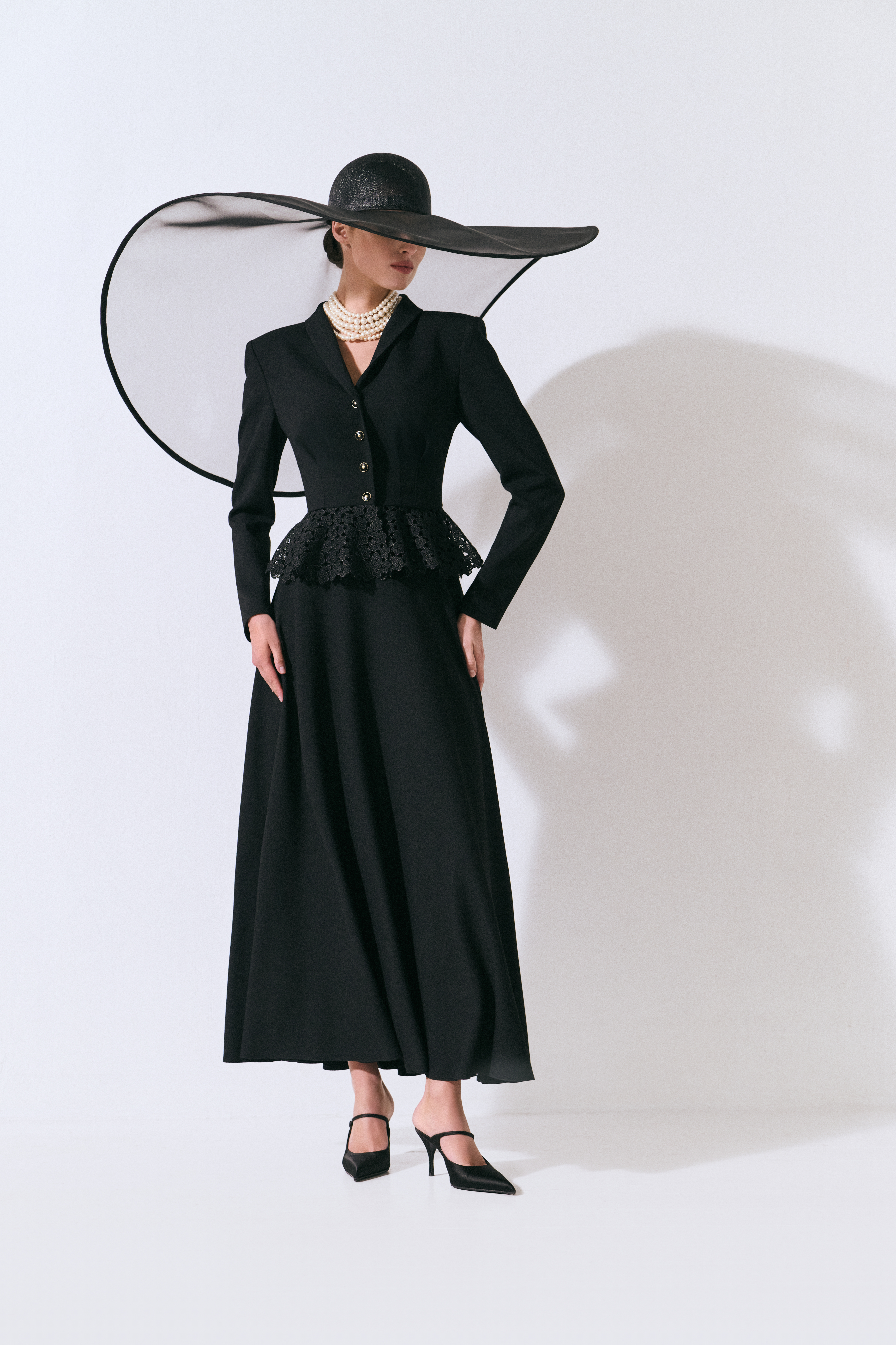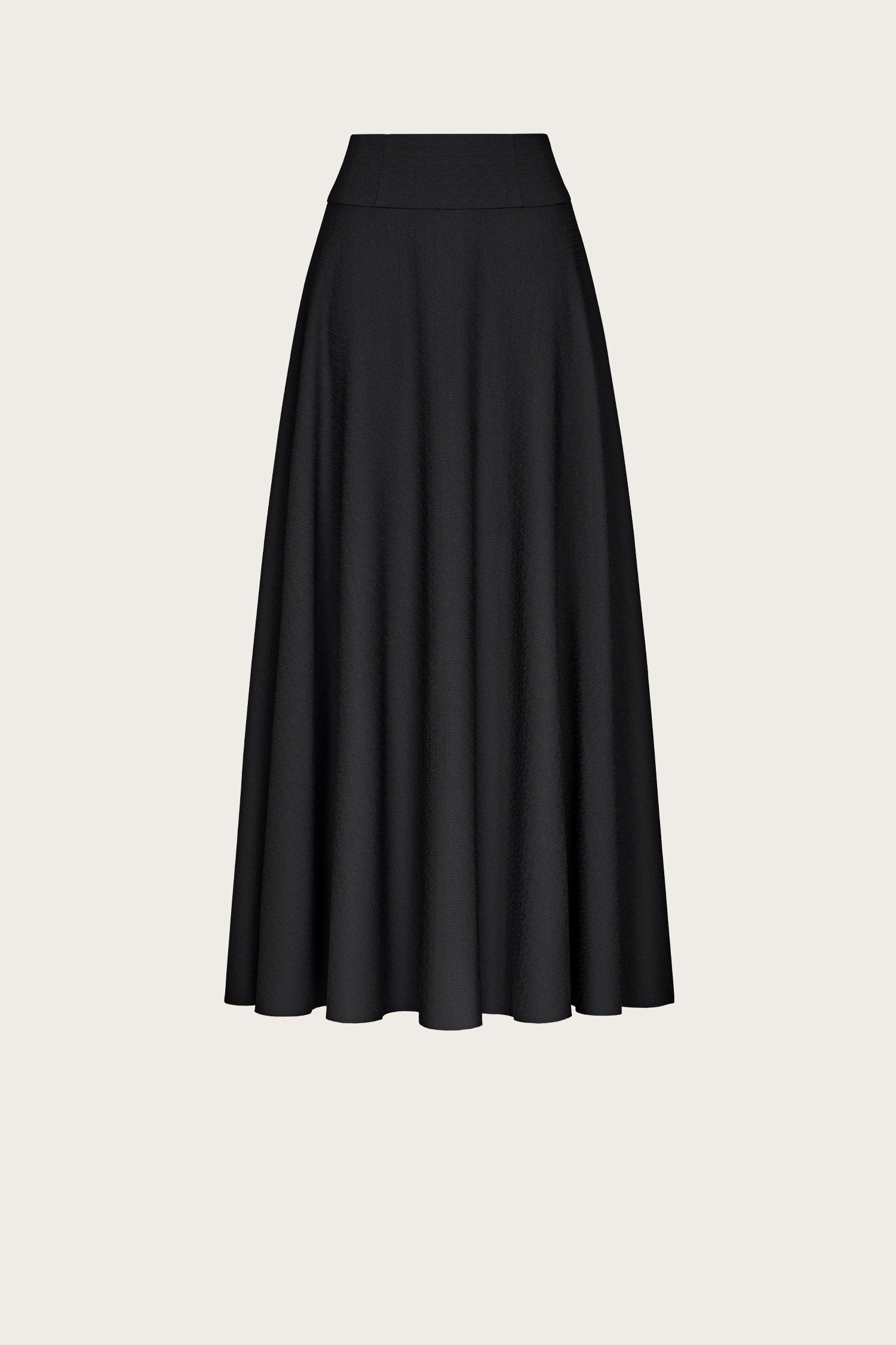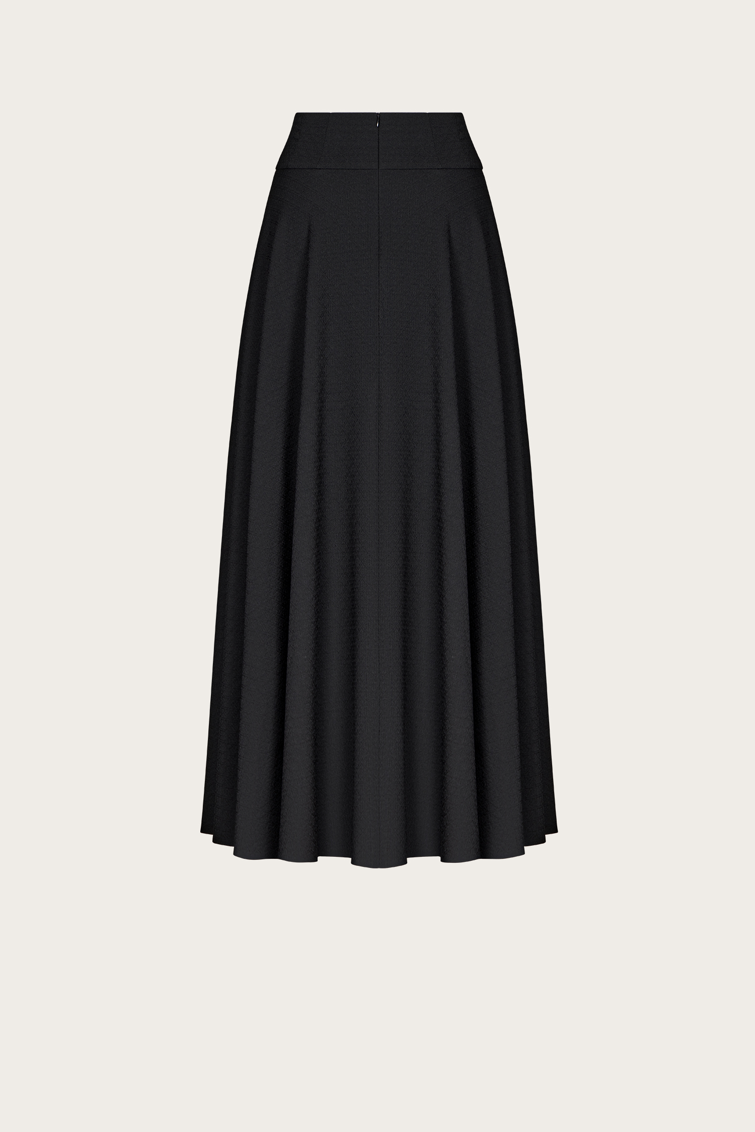 Юбка миди из черного жаккарда. Расклешенный силуэт. Застежка на молнию и крючок по спинке. Только сухая чистка. Сделано в России.